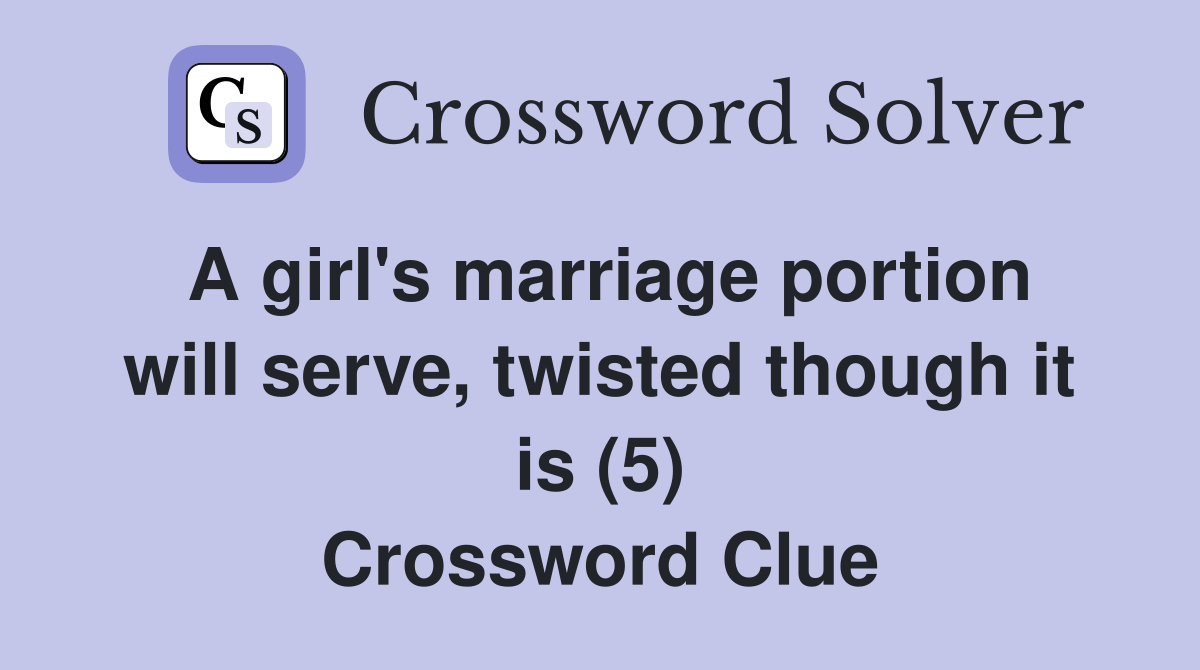 A girl's marriage portion will serve, twisted though it is (5