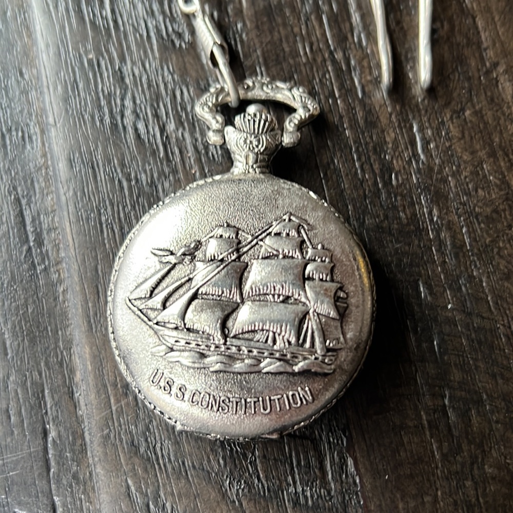 Silver Uss Constitution Pocket Watch Gem