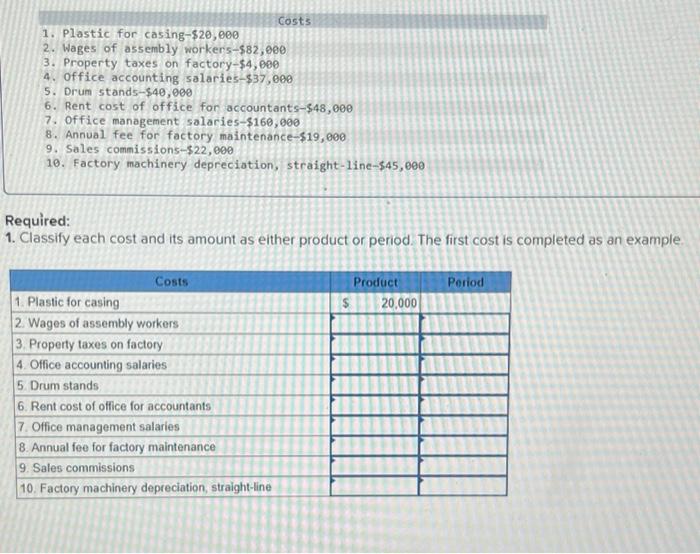 Solved Costs 1. Plastic for casing20,000 2. Wages of