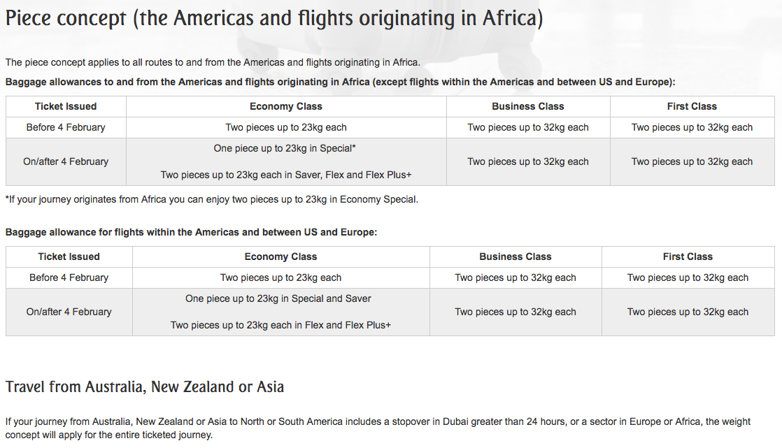 Emirates Quietly Reduces Economy Baggage Allowance The Points Guy Emirates Economy Baggage Allowance your allowance depends on the fare or travel class you’ve chosen. 20 kg for special fares, 25 kg for saver fares, 30 kg for flex. Piece and check fare class limits to avoid extra fees on emirates. Find out how to avoid airline. learn how much baggage you can check in based on your fare, travel class, and. Emirates Economy Baggage Allowance.