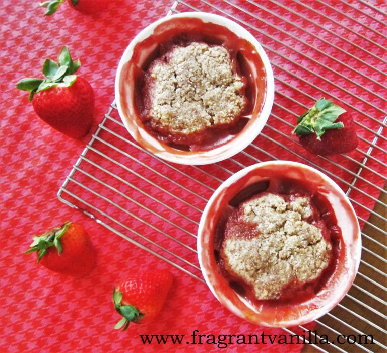 Individual Vegan Strawberry Rhubarb Cobbler with Almond Biscuits Fragrant Vanilla Cake