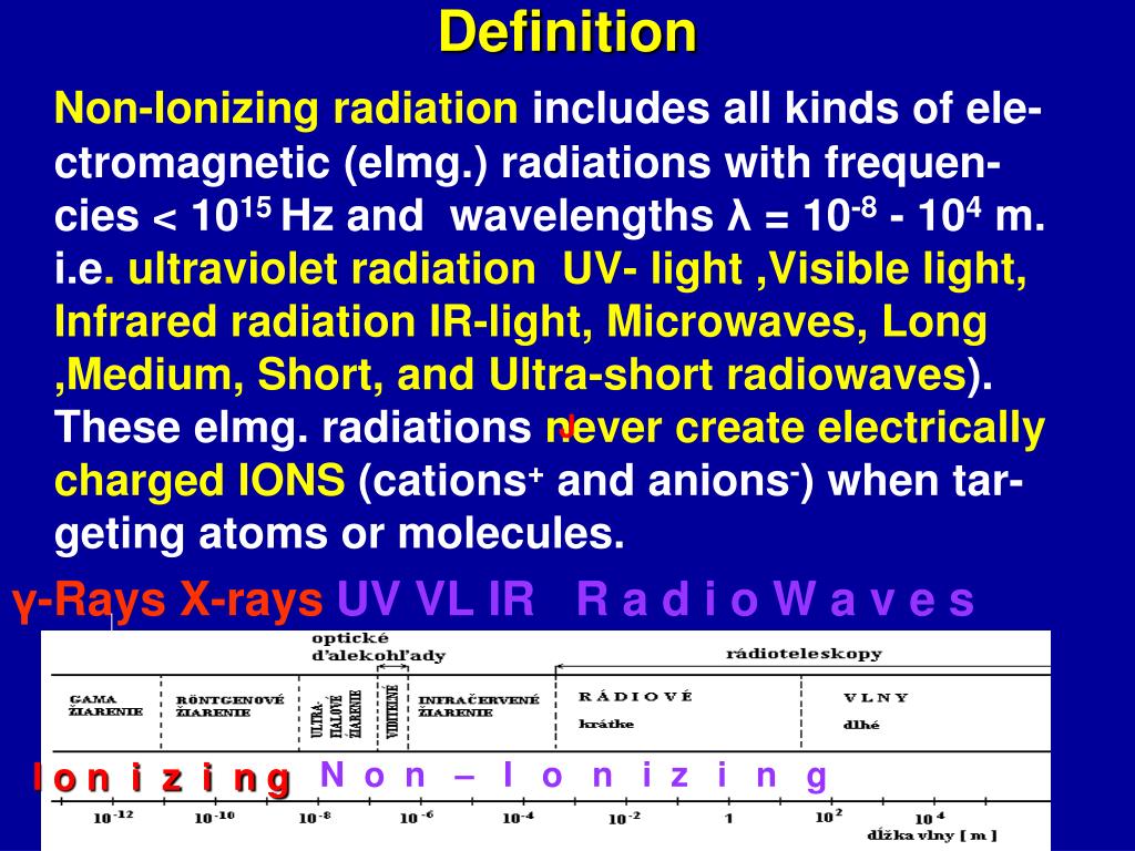 PPT NonIonizing Radiation PowerPoint Presentation, free download Non Ionizing Radiation Meaning This type of radiation does not have enough energy to. This type of radiation would include the visible spectrum through radio. Non Ionizing Radiation Meaning.