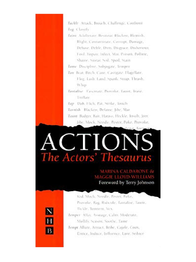 PDF) Actions The Actors&039; Thesaurus pdf free Action Thesaurus For Actors Finding the right action is an essential part of the process of preparation for the actor. It is a thesaurus of active verbs, with which the actor can refine the acting choice until s/he hits exactly the right action to help make. This thesaurus of active verbs helps the actor to refine the action. An essential companion for actors in.. Action Thesaurus For Actors.