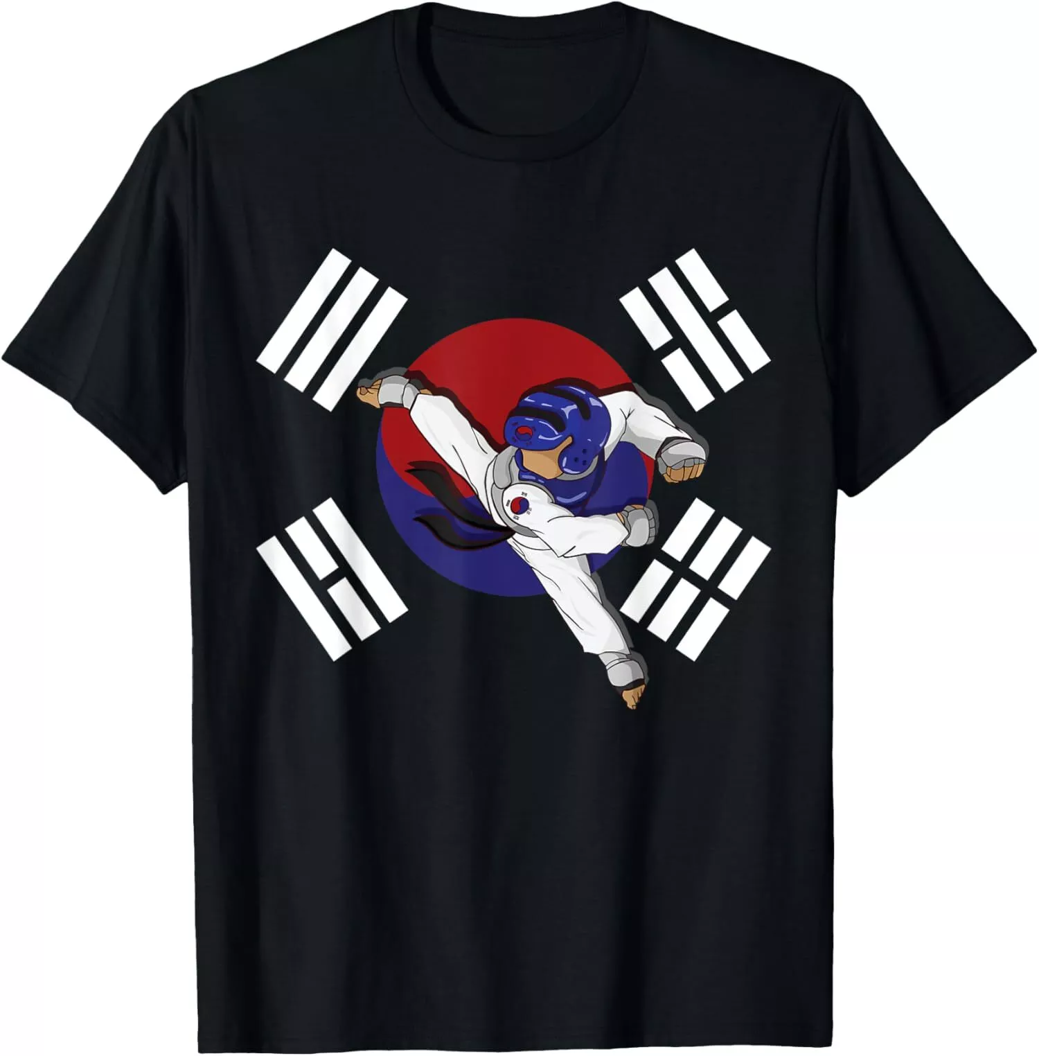Taekwondo Fighter Kicking on Korean Flag TKD Martial Arts Tee