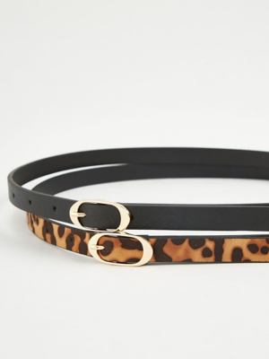 Thin Gold Buckle Belts 2 Pack Women at ASDA