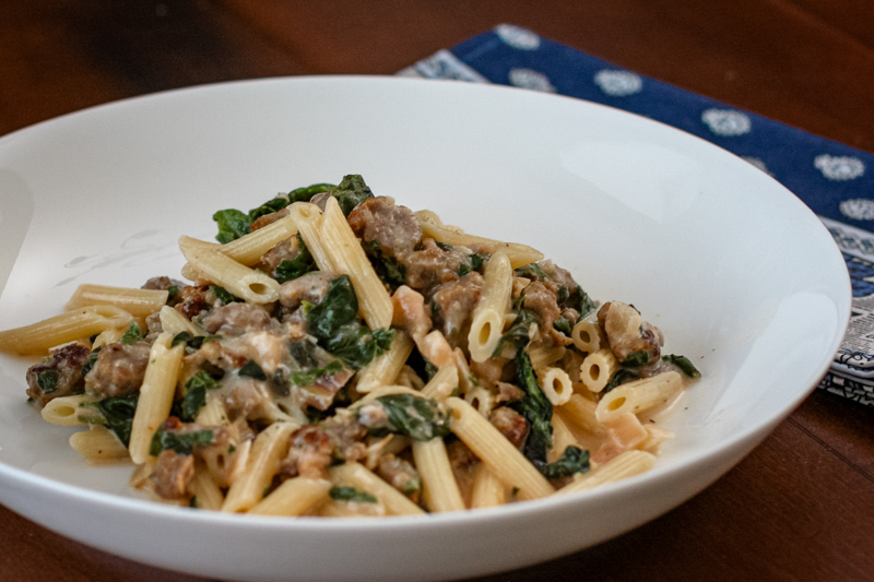Penne Pasta With Sausage, Cheese, and Spinach Recipe