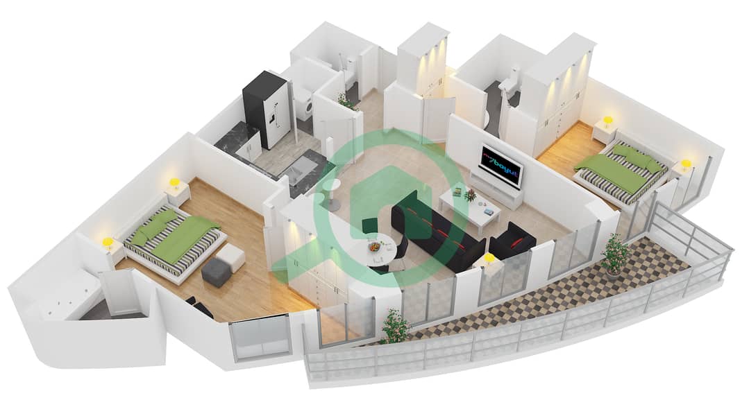 Floor plans for Unit 3 FLOOR 425 2bedroom Apartments in Burj Vista 1
