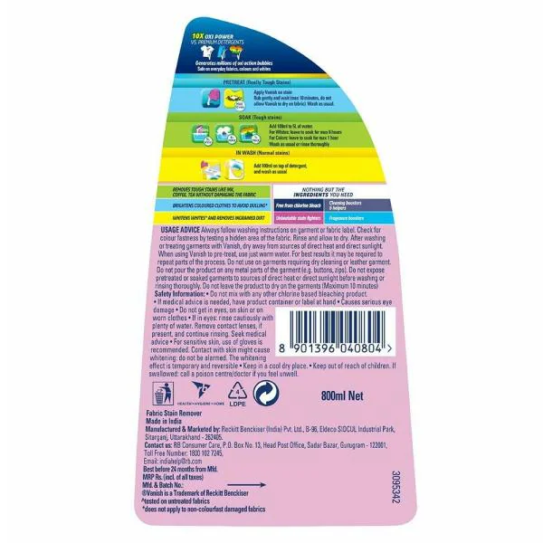 Buy VANISH OXI ACTION STAIN REMOVER LIQUID 800ML Online & Get Upto 60 Vanish Oxi Action Stain Remover Liquid 800 Ml With vanish oxi action liquid, you can remove all kinds of stain, from the one that can be clearly seen, to the stains that hide behind the collars. With vanish oxi action liquid, you can remove all kinds of stains, from the ones that can be clearly seen, to the stains that hide behind the collars. Easily remove tough stains. Vanish Oxi Action Stain Remover Liquid 800 Ml.