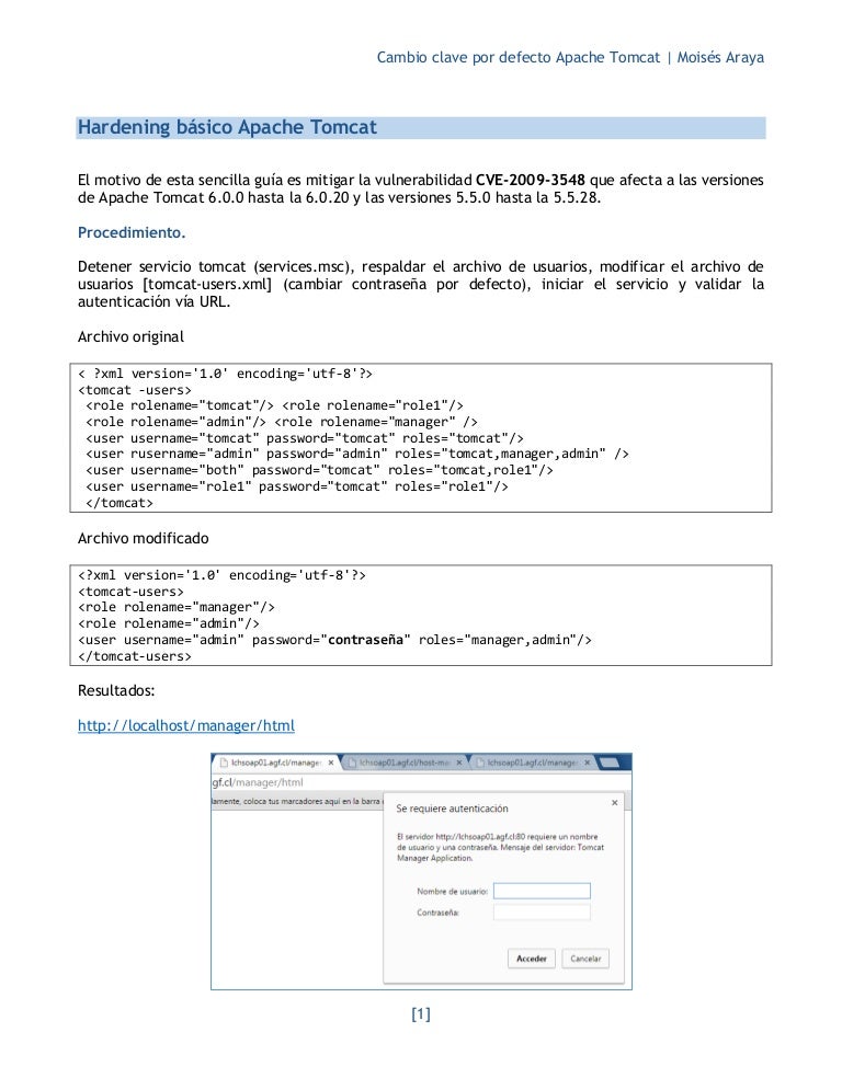 Cambio clave por defecto Apache Tomcat