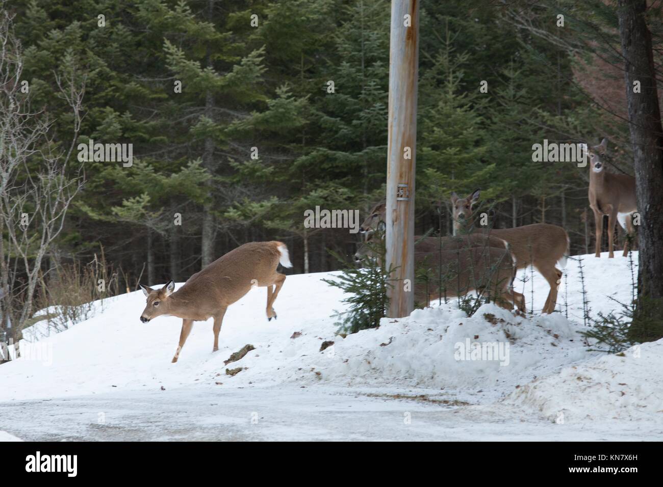 Group of whitetailed deer, Odocoileus virginianus, entering a Deer Yards In Maine Executive director of sportsman’s alliance of maine. This map shows the distribution of deer wintering areas (dwa) in relation to conserved lands of maine, hillshade, mobility corridors, and water. A new state law in maine has earmarked $40 million over the next four years for purchasing private land to use as state. Once snow depths average a foot or more,. Deer Yards In Maine.