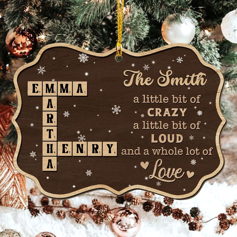 Personalized Crossword Puzzle Ornament, Custom Family Name Puzzle