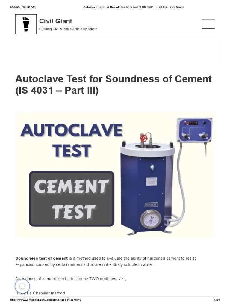 Autoclave Test For Soundness of Cement (IS 4031 Part III) Civil Giant PDF Concrete Cement