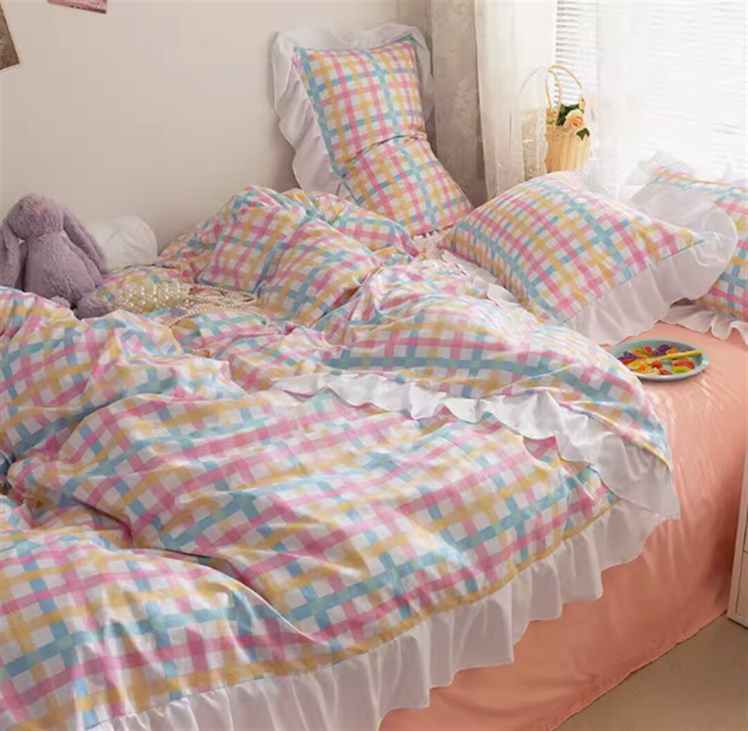 Rainbow Gingham Duvet Cover INS Plaid Duvet Cover Set Cozy Etsy