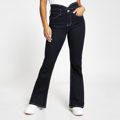 Petite dark blue high rise bootcut jeans River Island