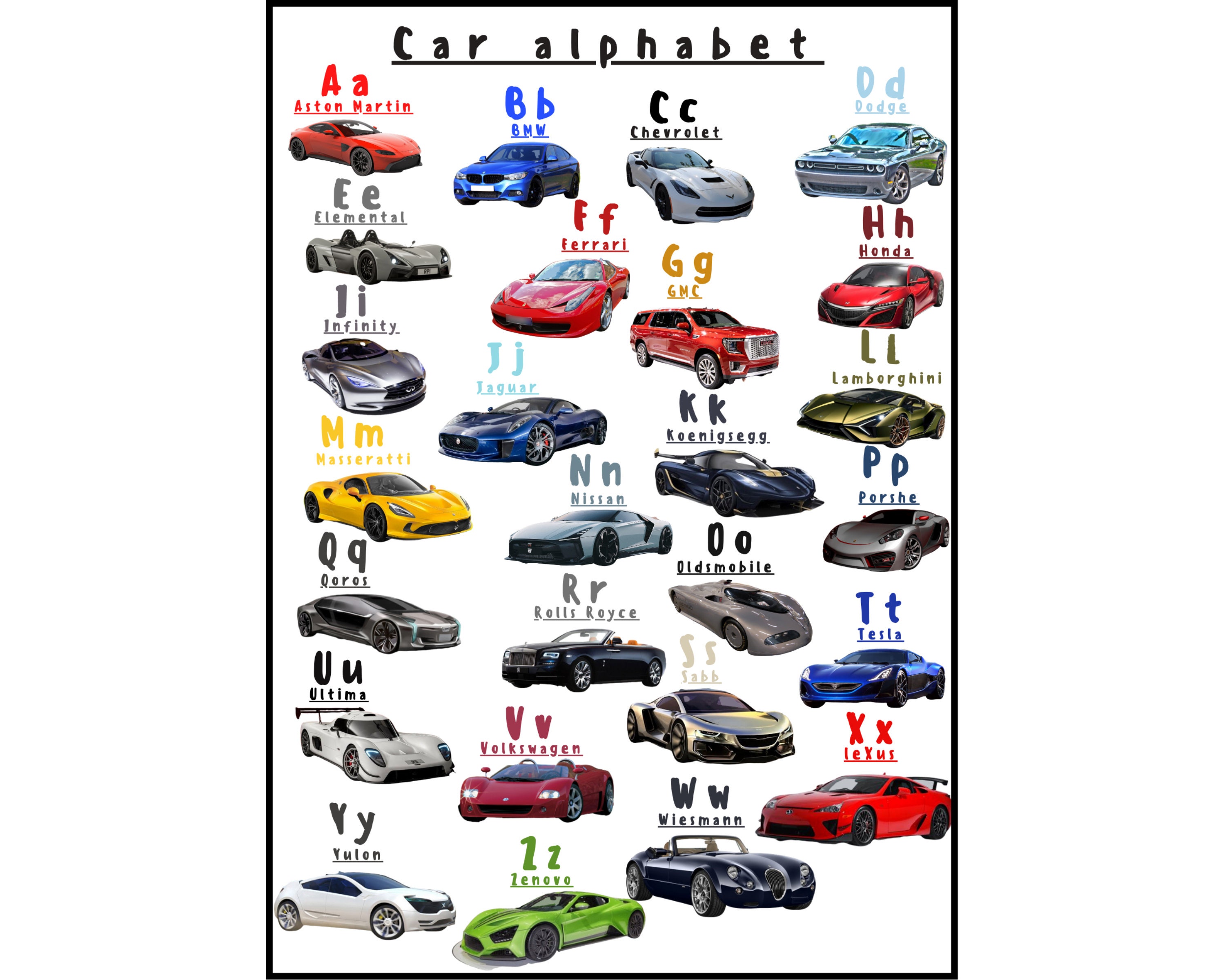 ABC AZ Car Alphabet Poster Etsy Car Abc Poster Browse our amazing poster designs or create your own posters today! Check out our car theme abc poster selection for the very best in unique or custom, handmade pieces from our wall decor shops. Find thousands of posters and print sets from modern artwork or vintage designs. Check out our car abc poster selection for the very best in unique. Car Abc Poster.