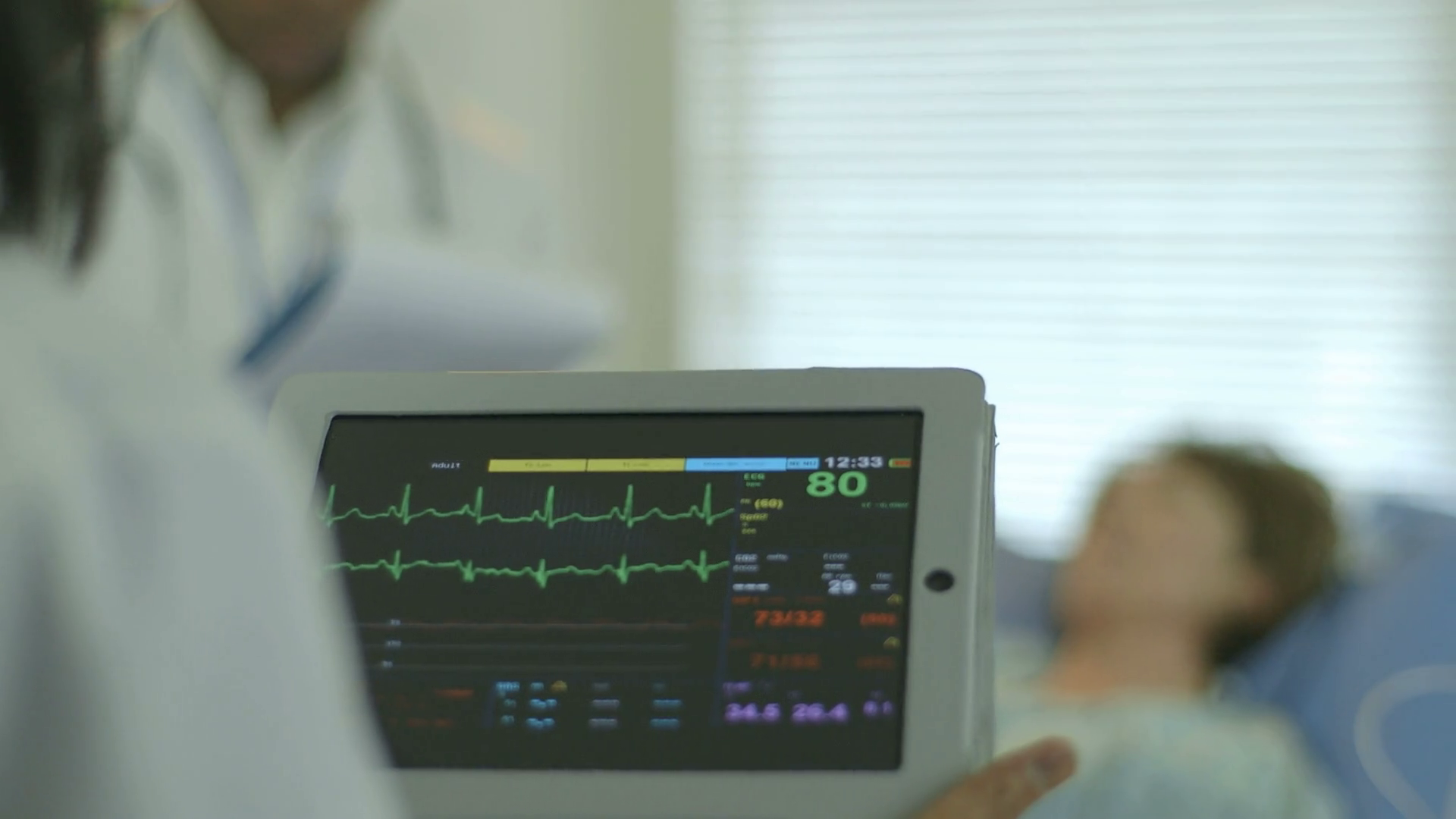 nurse using a portable patient monitor Stock Video Footage 0015 SBV