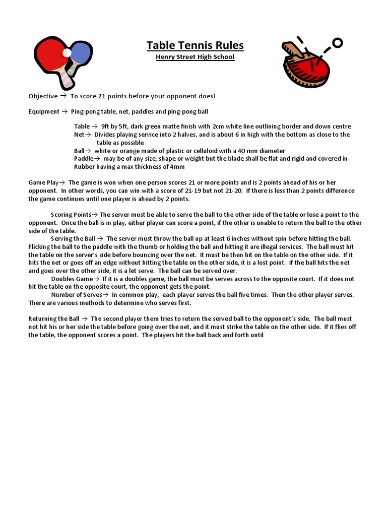 Table Tennis Rules Table Tennis Athletic Sports