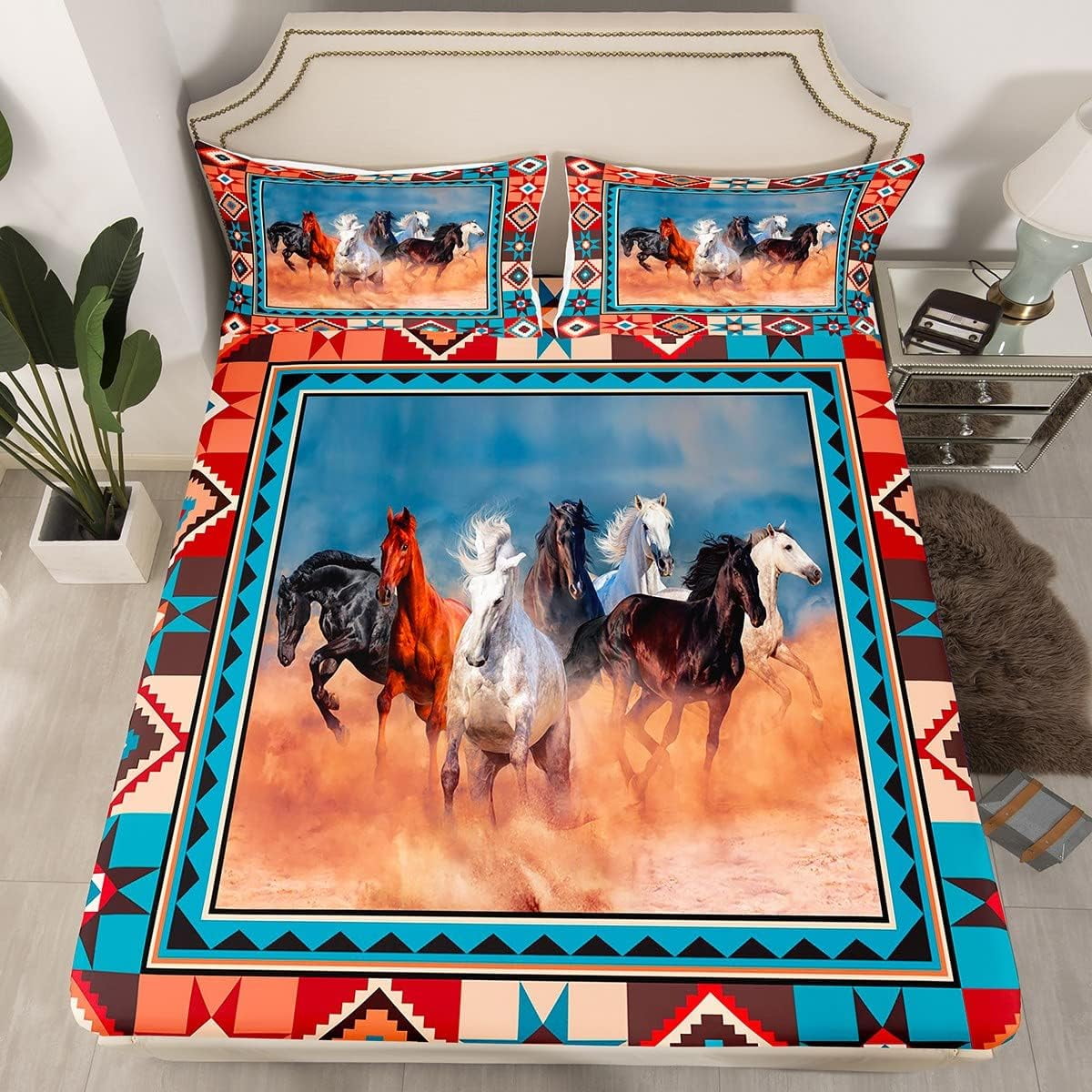 Galloping Horse Bed Sheets Southwestern Native Aztec Horses Fitted Horse Bed Sheets Single Enjoy free shipping on most stuff, even big stuff. check out our horse bedding selection for the very best in unique or custom, handmade pieces from our duvet covers shops. shop wayfair for the best horse bed sheets set. check out our horse sheet bedding selection for the very best in unique or custom, handmade pieces from. Horse Bed Sheets Single.