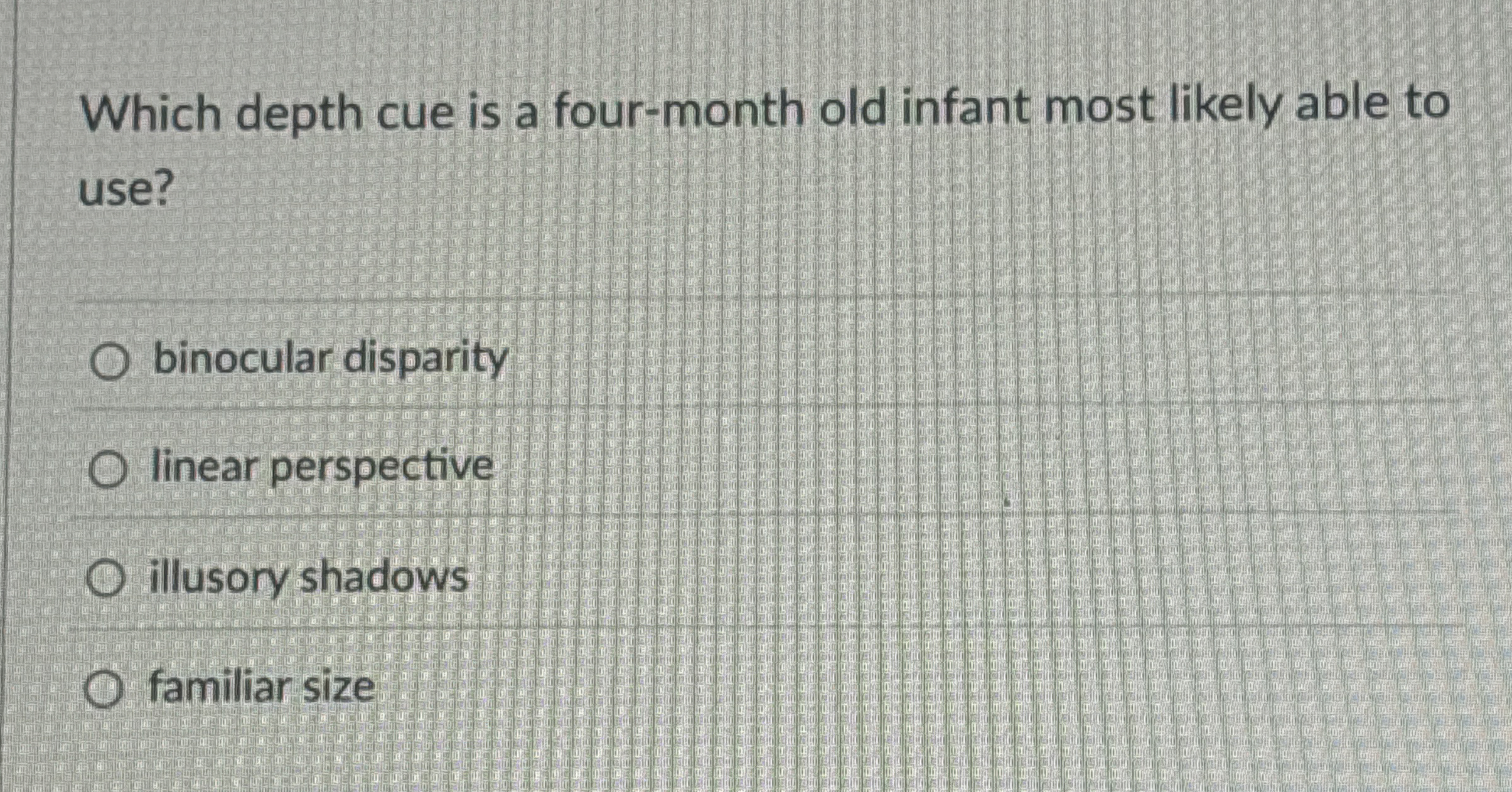 Solved Which depth cue is a fourmonth old infant most