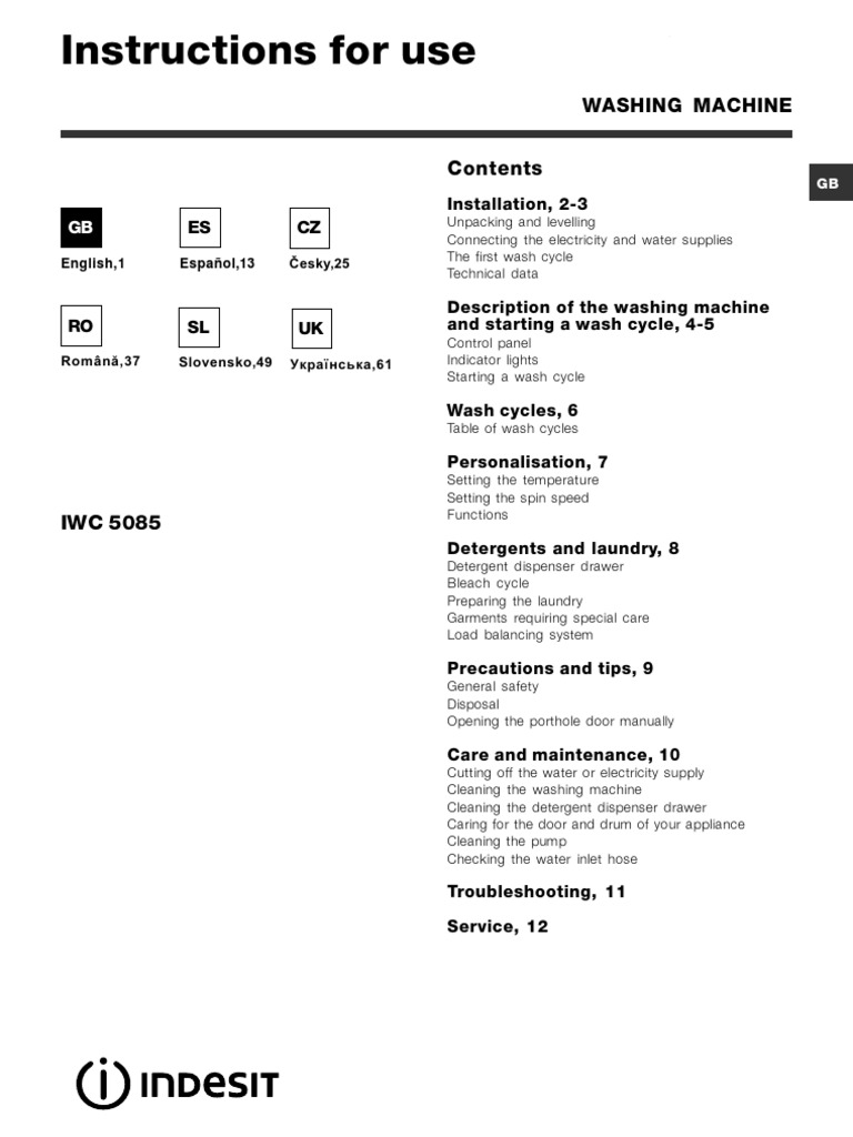 INDESIT Washing Machine Ac Power Plugs And Sockets