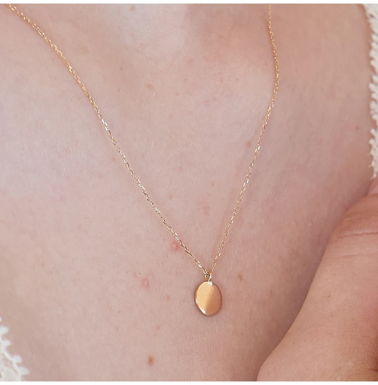 Mercery Jewelry 14k Solid Real Gold Simple Custom Hand Made Jewelry Fashion Disc Pendant