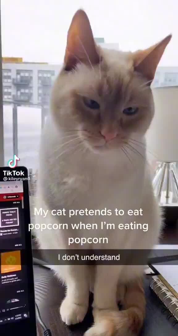 Popcorn Eating Cat Toppings like butter, salt, caramel, and a variety of spices. Is popcorn safe for cats to eat? If your cat eats any of these ingredients, we suggest you speak to a vet. Popcorn isn’t considered toxic for cats, but the snack is unnecessary and can pose health risks, including upping the chances of. However, that's only true for plain popcorn.. Popcorn Eating Cat.