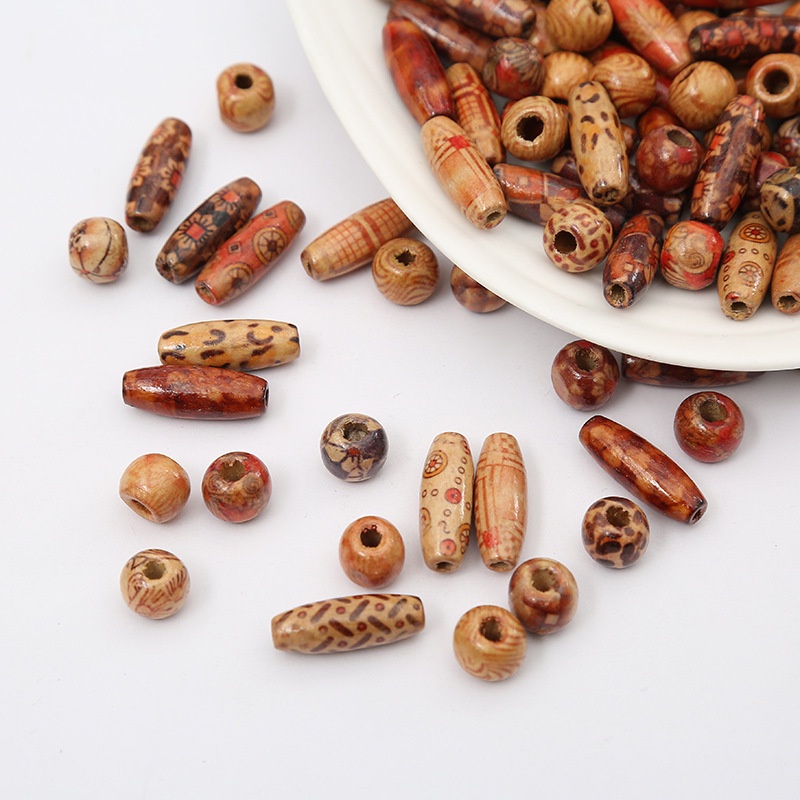 50pcs Long Wooden Beads And Round Wooden Beads Mixed Styles Mixed Sizes