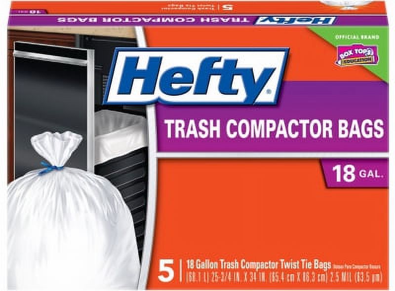 Hefty 5 Count 18 Gallon Trash Compactor Bag 2 Ply Twist Tie