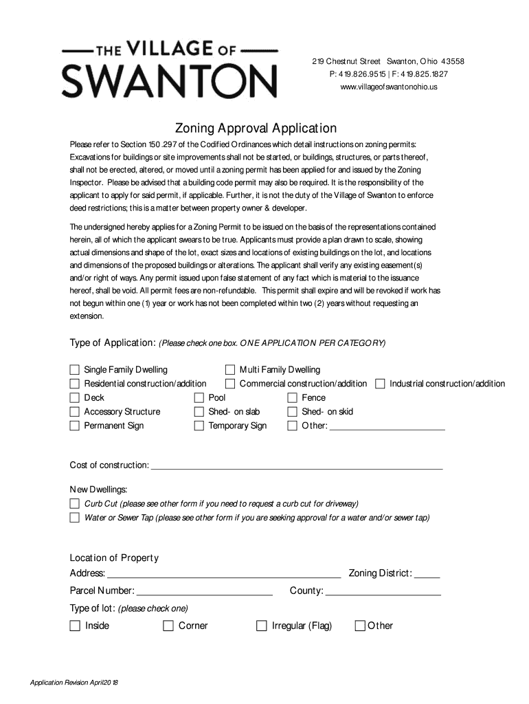 Fillable Online Zoning Approval Application Village of Swanton Ohio