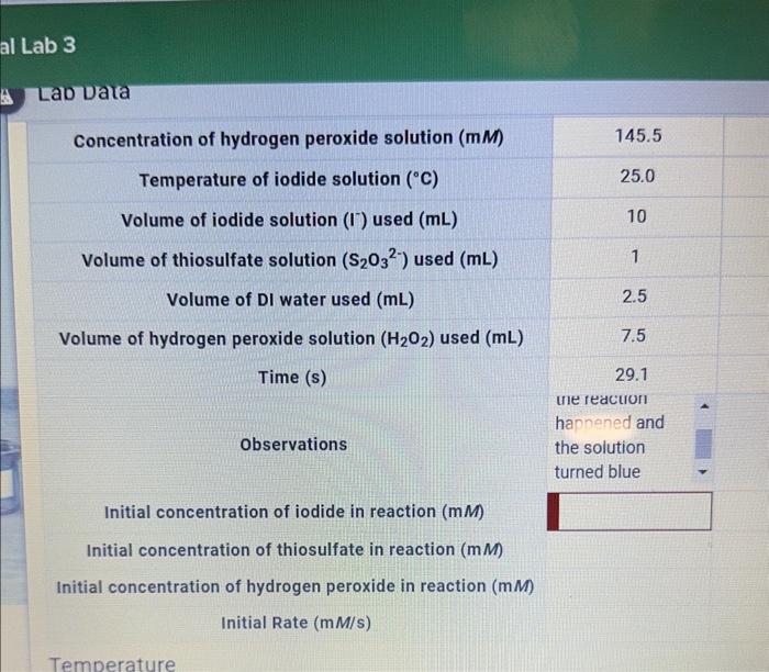 Solved please help with Iodine clock reaction lab