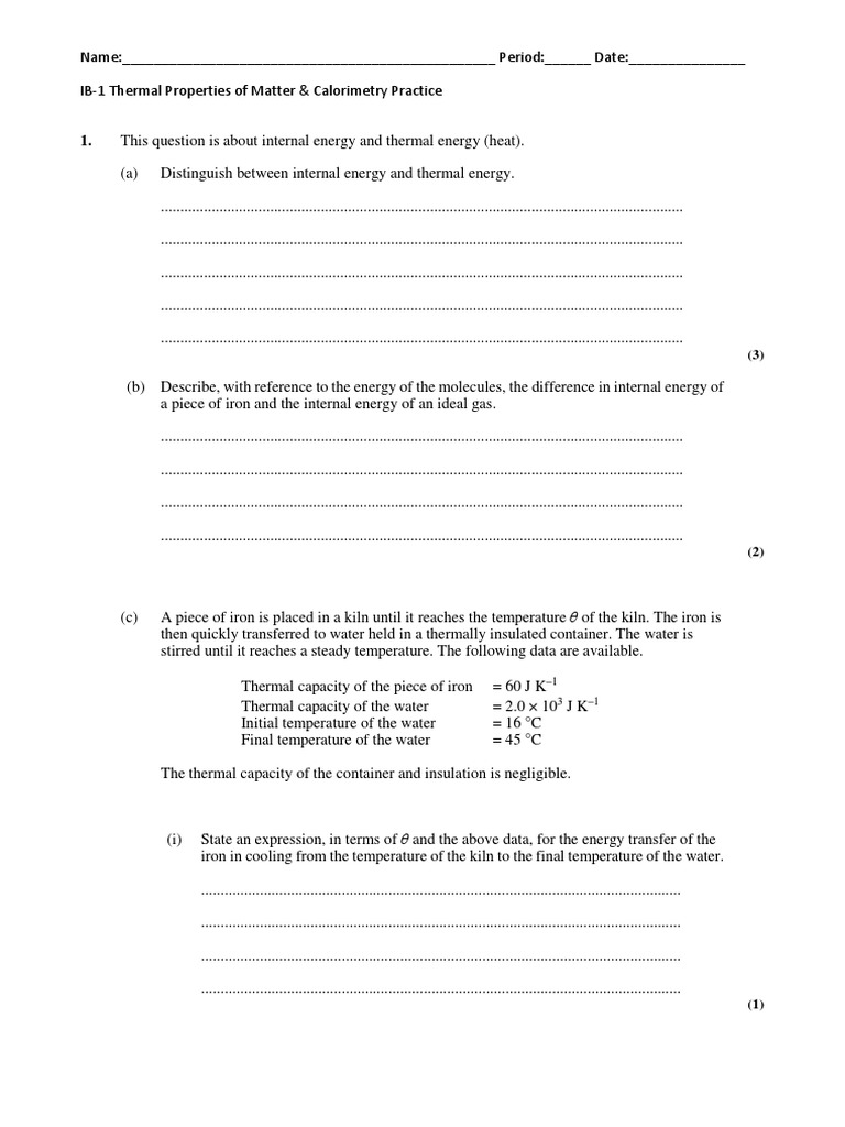 IB1 Thermal Properties & Calorimetry Practice PDF Latent Heat