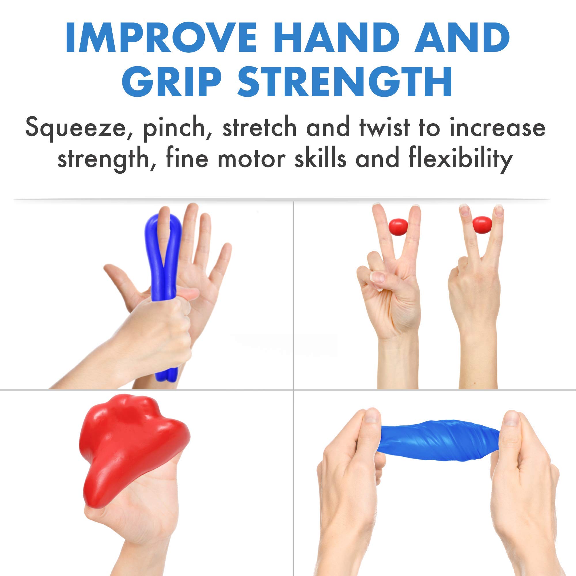 Pivit Therapy Putty Hand Exerciser Stress Balls for Adults 4 Pack Fingers Hands & Grip