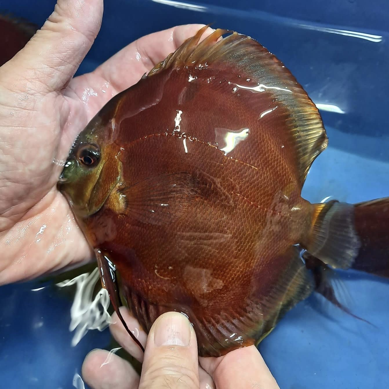 Wild X Red Cover Blue Rim Symphysodon discus/S.aequifasciata SVR Aquatics Transhipping Services Red Cover Blue Ring Discus Only 2 left in stock! Red cover discus colors are very. Wild x red cover blue rim 6″. The red cover discus has a unique and interesting look. The red cover discus fish exudes timeless sophistication with its deep burgundy coloration, evoking a sense of class and refinement in any. Blue rim red cover is a mysterious or dream fish. Red Cover Blue Ring Discus.