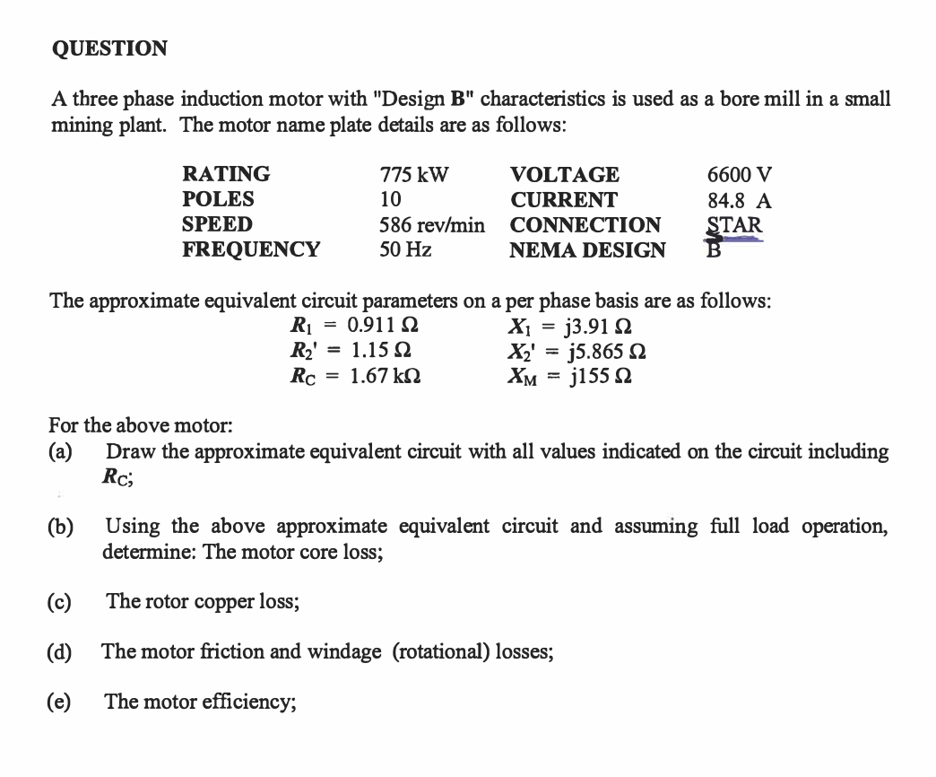 Solved QUESTION A three phase induction motor with "Design