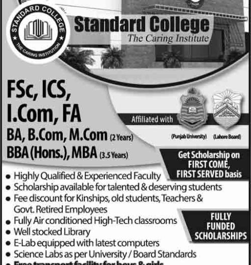 Standard College Lahore Admission 2020 Scholarship Last Date