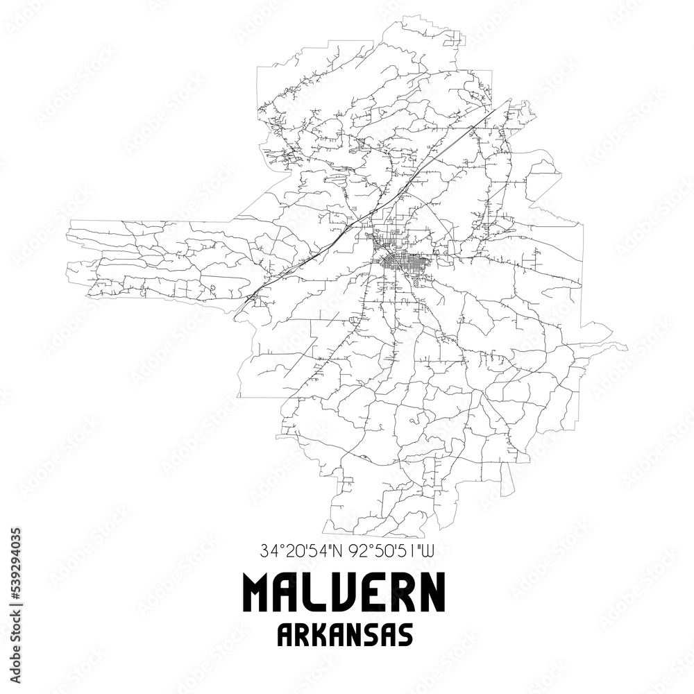 Malvern Arkansas. US street map with black and white lines. Stock Illustration Adobe Stock