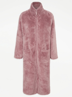 Mauve Fleece Zip Fasten Dressing Gown Women at ASDA