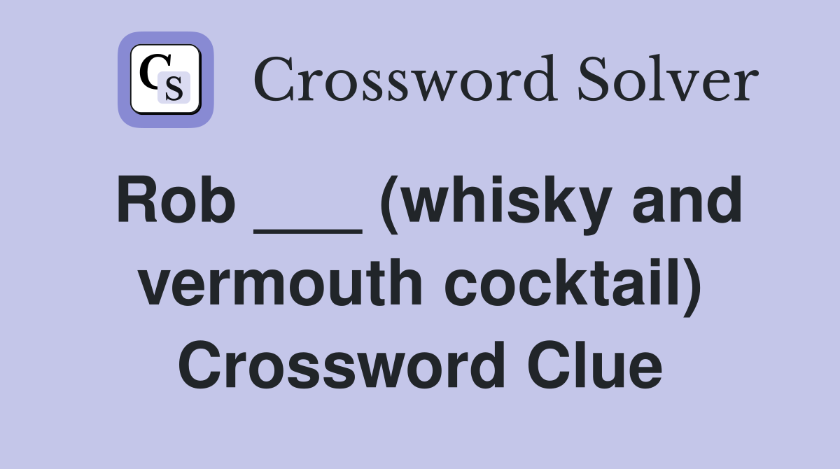 Rob ___ (whisky and vermouth cocktail) Crossword Clue Answers Crossword Solver