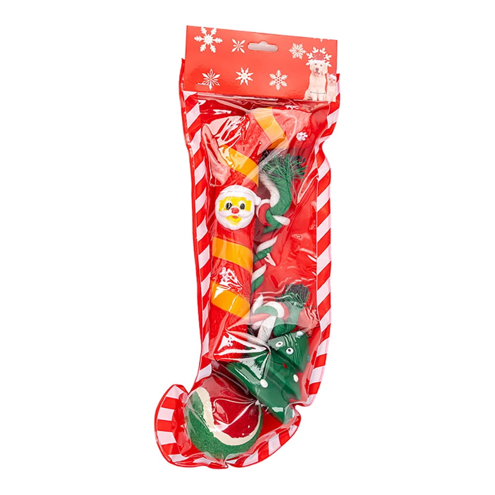 Christmas Stocking Dog Toys, Xmas Pet Cat Toy Gift Set with Squeaky Toys, Balls A7