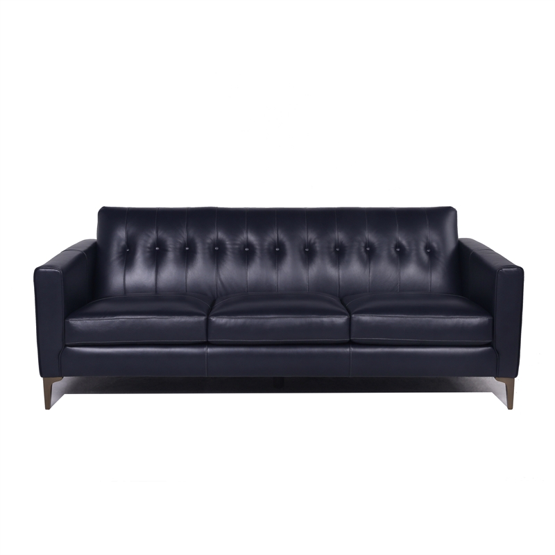 Maklaine 19" MidCentury Leather Upholstered Tight Back Sofa in Navy Cymax Business
