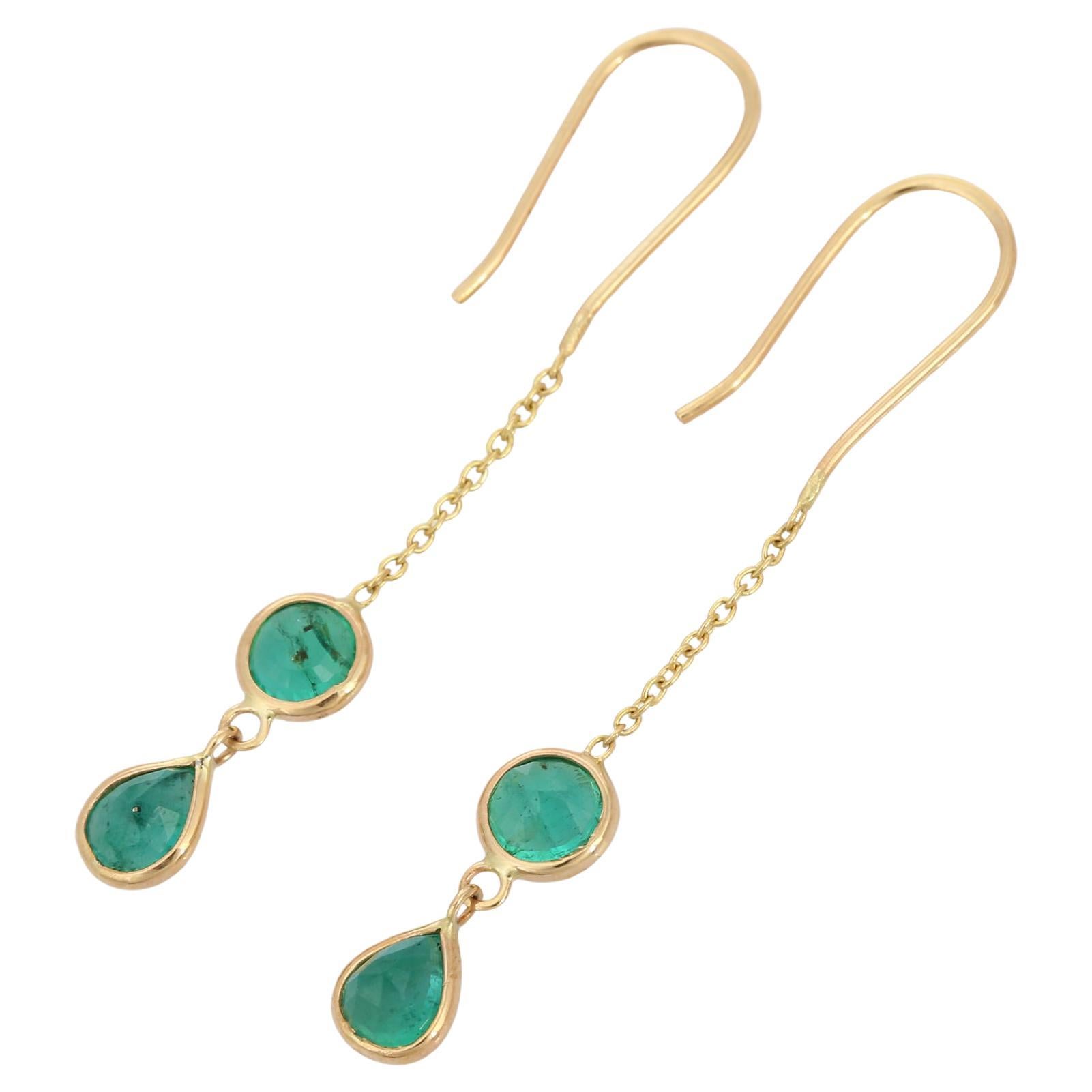 1.4 ct Emerald Contemporary Dangle Drop Earring in 18K Solid Yellow Gold For Sale at 1stDibs
