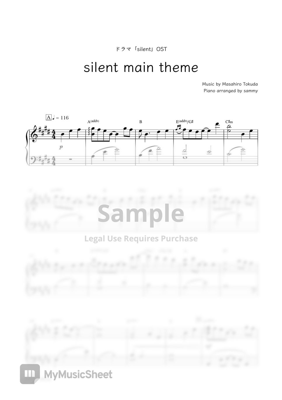 Japanese TV series "Silent" OST silent main theme Sheets by sammy