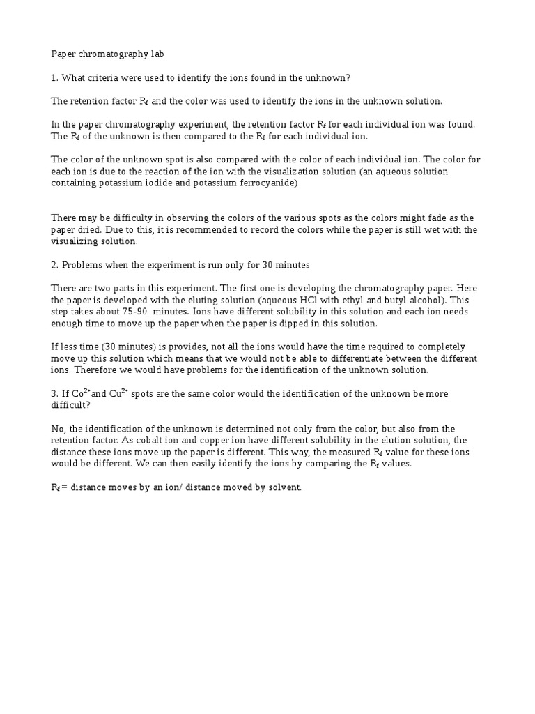 Paper Chromatography Lab Questions PDF