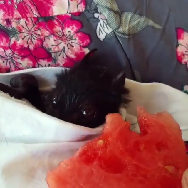Baby Bat Eating Watermelon For the First Time Video POPSUGAR Pets Bat Eating Melon this fruitbat was found lying on the ground in guadalcanal, and subsequently kept as a pet by an australian platoon. just a fruit bat absolutely loving his watermelon fruit bats either linger in the air and eat or land in order to eat their food. • bats & watermelon • discover the truth about bats' diet and. Bat Eating Melon.