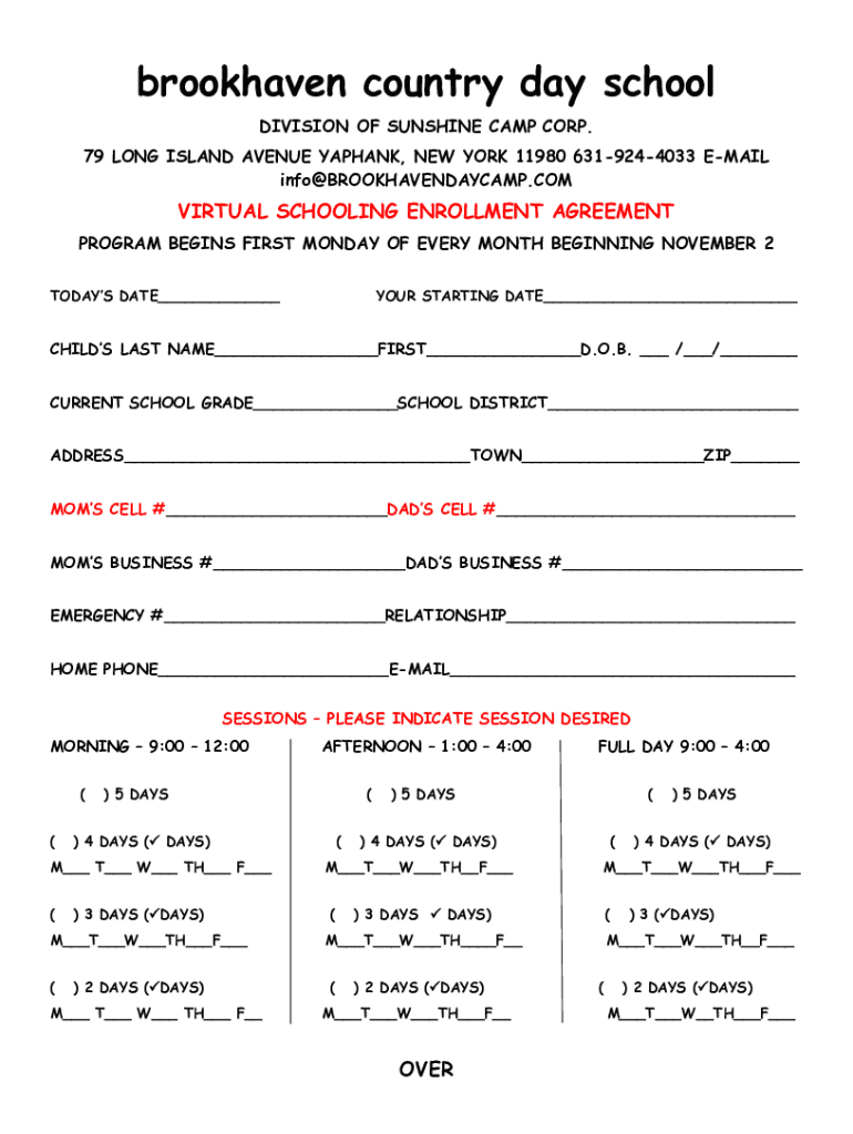 Fillable Online Contact Brookhaven Country Day Camp and Preschool Fax