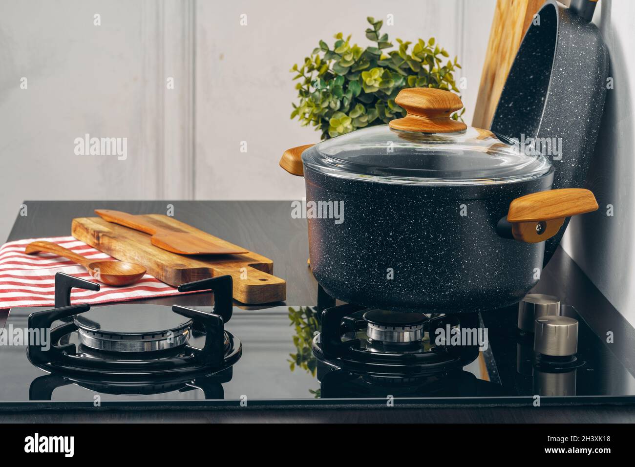 Clean saucepan on a gas stove in kitchen Stock Photo Alamy