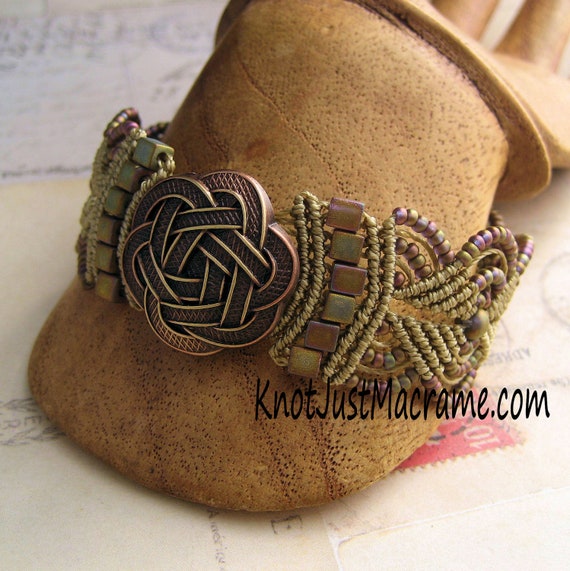 Celtic Knot Beaded Macrame Bracelet Copper and by KnotJustMacrame