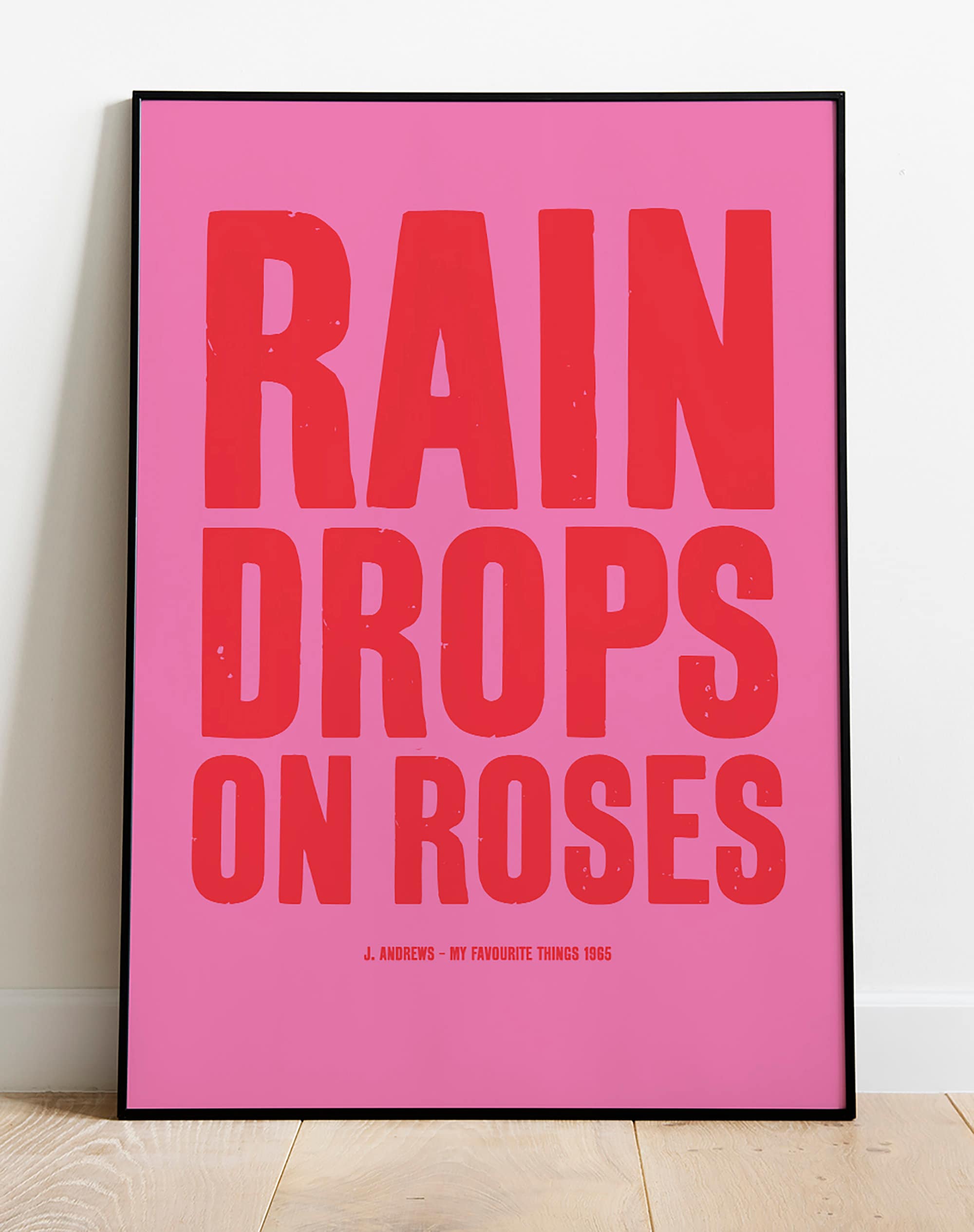 Raindrops on Roses Typographic Print Poster Pink Gallery Wall Art the