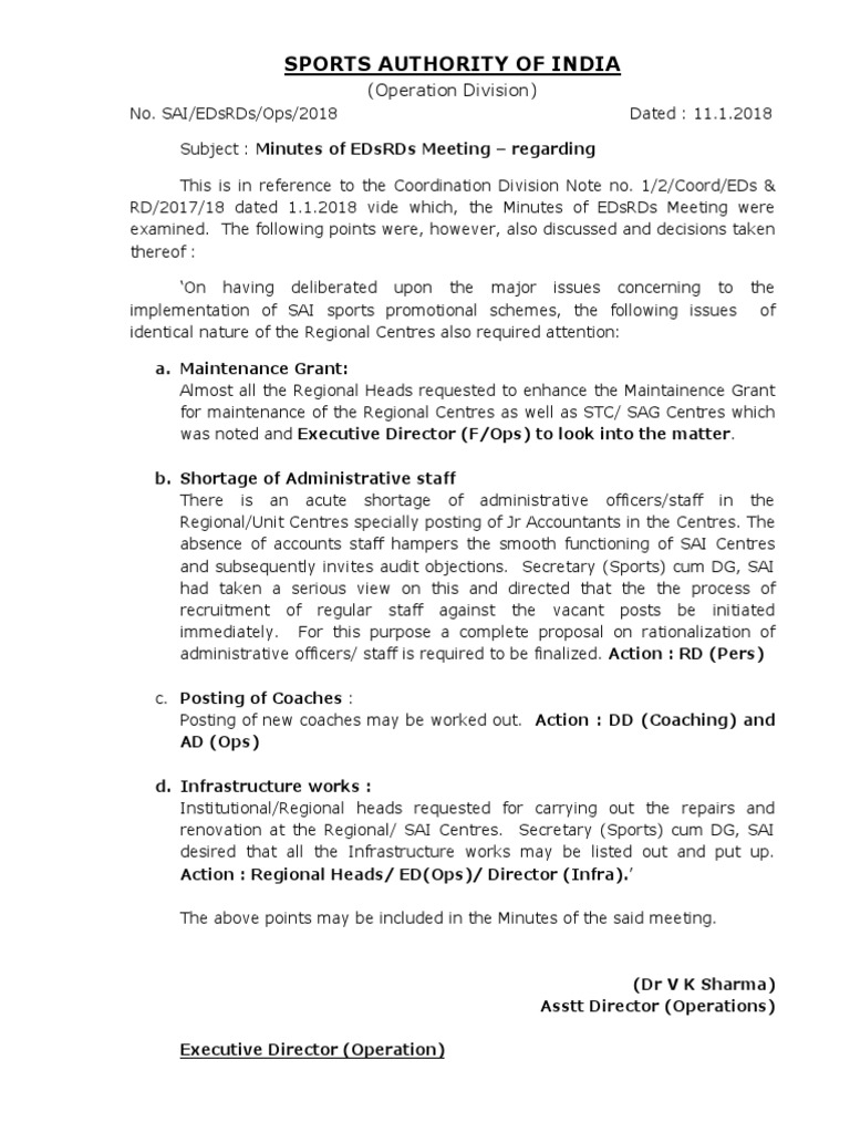 Sports Authority of India (Operation Division) PDF Government
