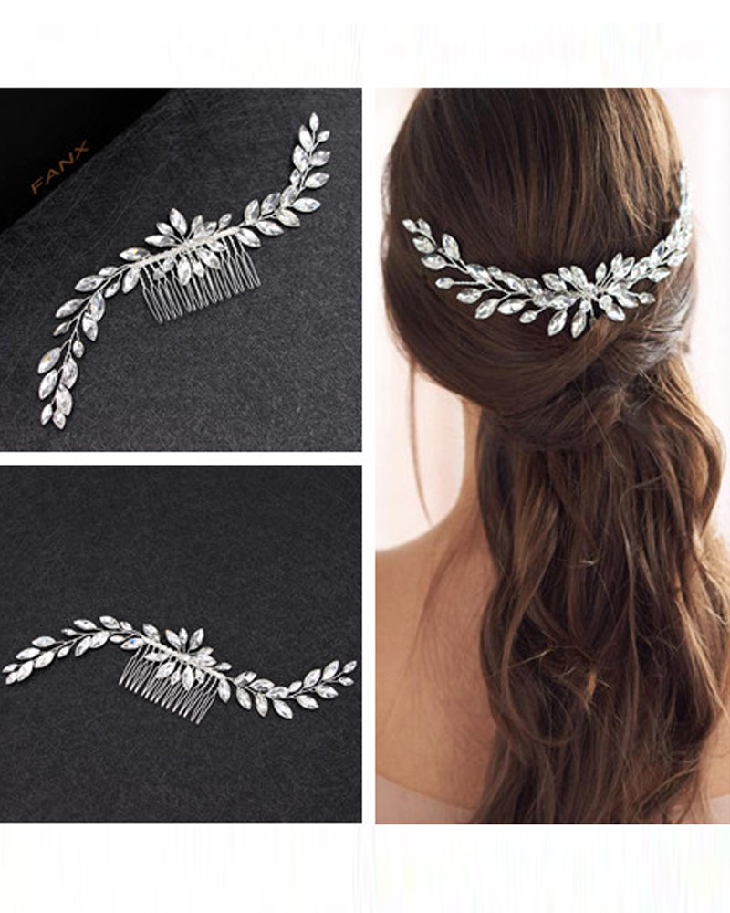 Bride Wedding Hair Comb Clip Rhinestone Leaf Side Combs Headpiece Wedding Side Hair Comb this classy and vintage design silver wedding hair comb is perfect alternative to bold tiaras, crown or headband. See our favorite side hairstyles for a wedding, below. a side swept hairstyle paired with a bridal hair comb is an elegant and timeless choice. check out our bridal side hair comb selection for the very best in unique. Wedding Side Hair Comb.